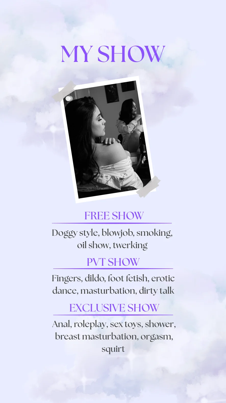 Doggy Style, Wajah, Blowjob, Pertunjukan Minyak, Heels, Twerk, Merokok, Meraba, Dildo atau Vibrator, Dirty Talk, Fetish Kaki, Masturbasi, Tarian Erotis, Striptis, Ahegao, Memukul, Kaki Unta, Krim, Topless, Rok atas, Yoga, Anal, Bermain Peran, Mainan Seks, Mandi, Tittyfuck, Orgasme, Squirt, Penetrasi Ganda, Tenggorokan, Mainan Anal